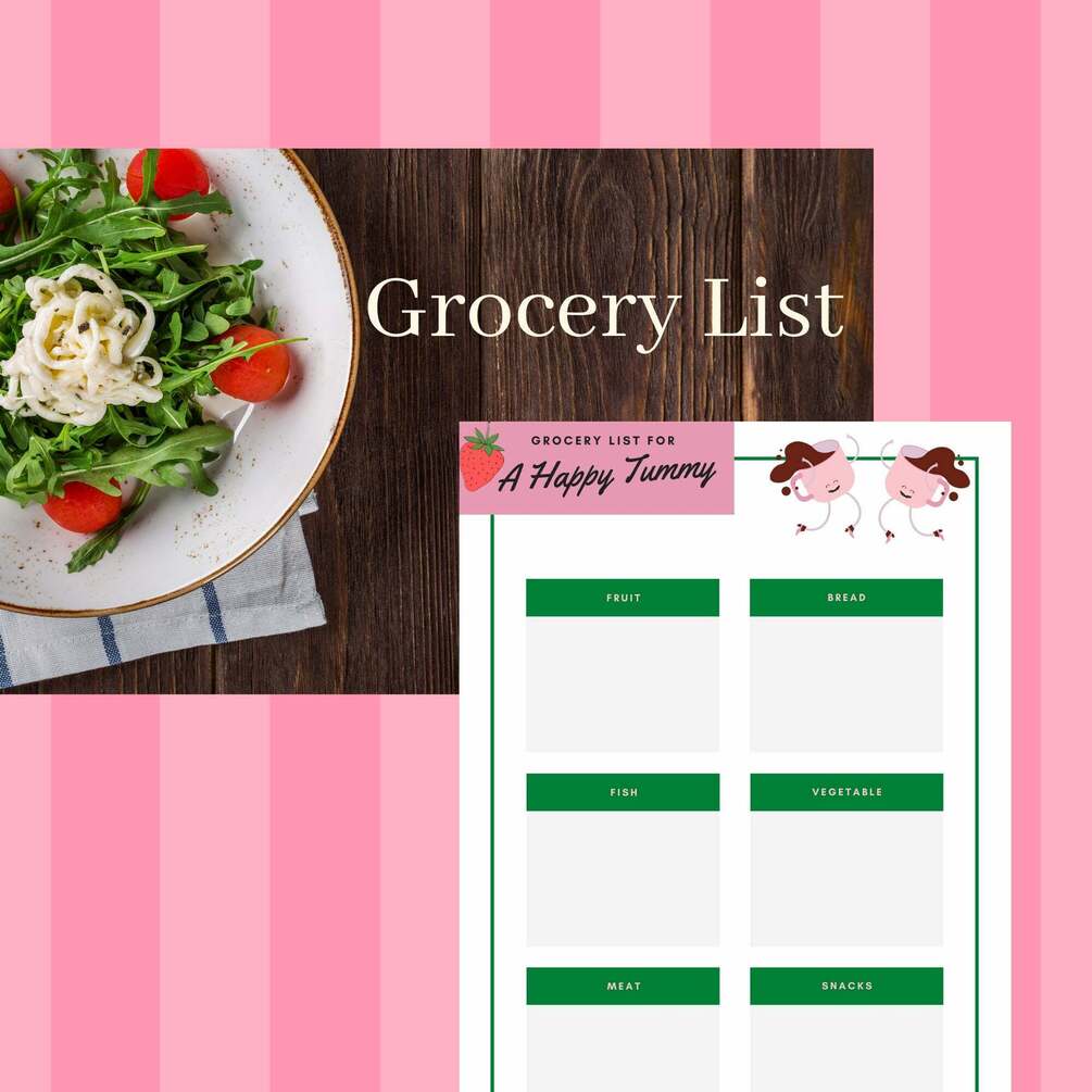 GROCERY LIST for Food | Digital Download | Gorcery list for a happy Tummy |Printable | Simple