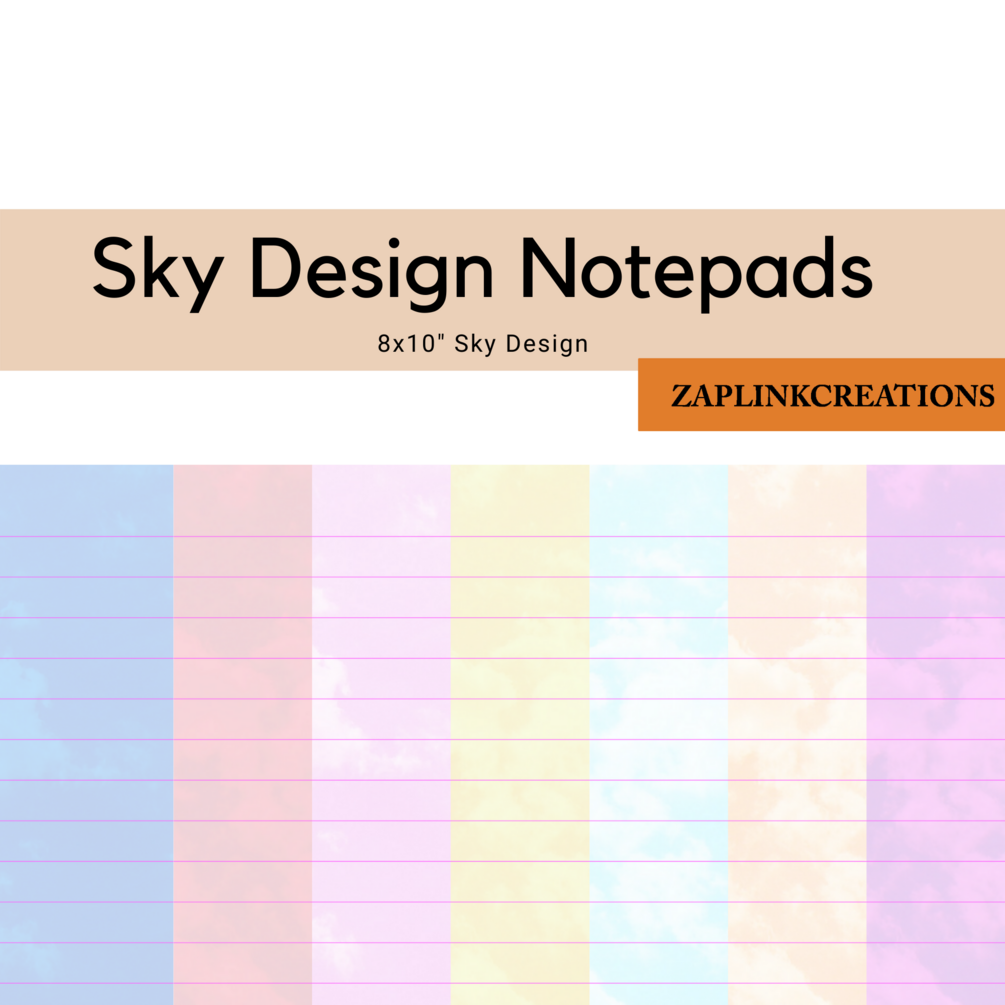 7 pieces sky design colored notepads size: 8x10" pdf format .jpg format .png format